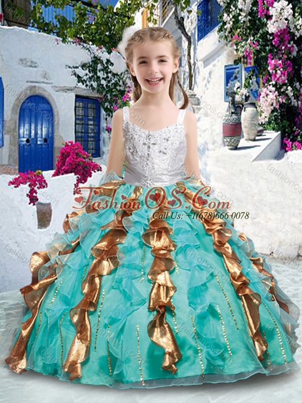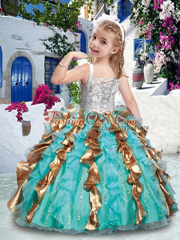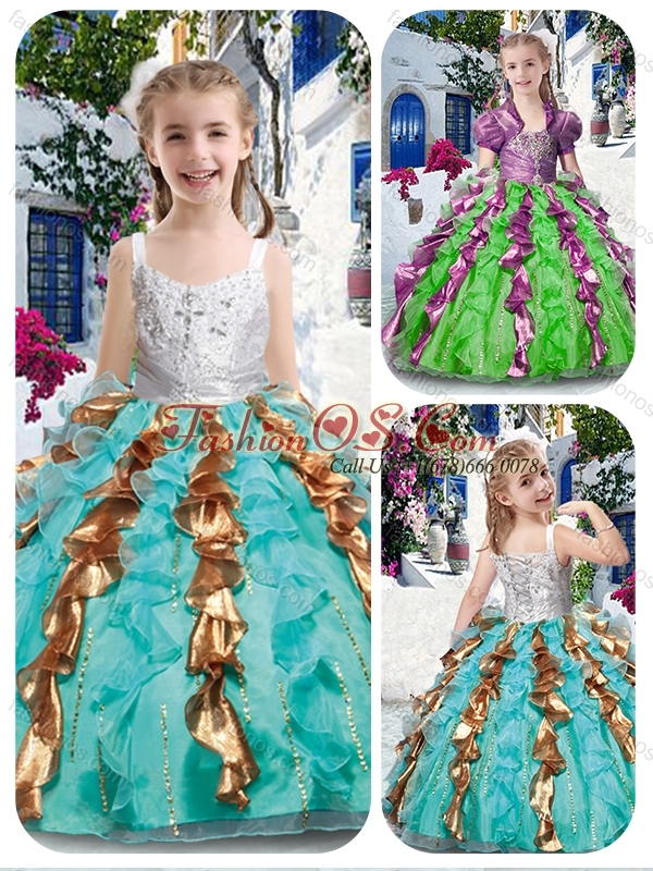 Most Popular Straps Little Girl Pageant Dresses with Beading and Ruffles