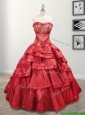 Most Popular Taffeta Red Quinceanera Dress with Appliques and Ruffled Layers