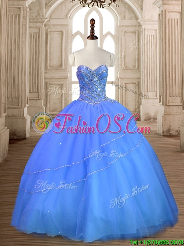 Most Popular Tulle Big Puffy Beaded Sweet 16 Dress in Blue