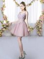Most Popular V-neck Sleeveless Court Dresses for Sweet 16 Mini Length Appliques Pink Tulle