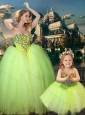 Most Popular Yellow Green Spaghetti Straps Flower Girl Pageant Dress with Beading