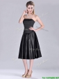 Most Popular Zipper Up Strapless Black Mother of the Bride Dress in Tea Length