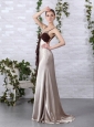 Multi Color Beading Long Plus Size Prom Dresses with Backless and Brush Train