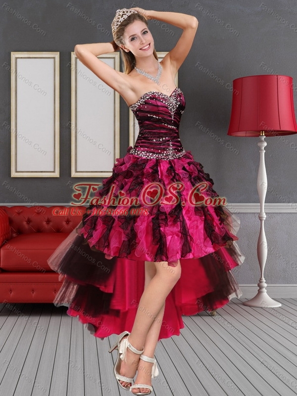 Multi Color High Low Sweetheart Prom Dresses with Beading and Ruffles