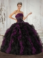 Multi Color Strapless Quinceanera Dress with Ruffles and Embroidery
