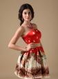 Multi-color A-line Strapless Mini-length Printing Prom Dress