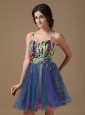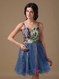 Home >  Prom Dresses >  Short Prom Dresses > Multi-color A-line Straps Mini-length Organza and Printing Beading Prom Dress