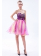 Multi-color A-line Sweetheart Mini-length Organza Beading Cocktail Dress