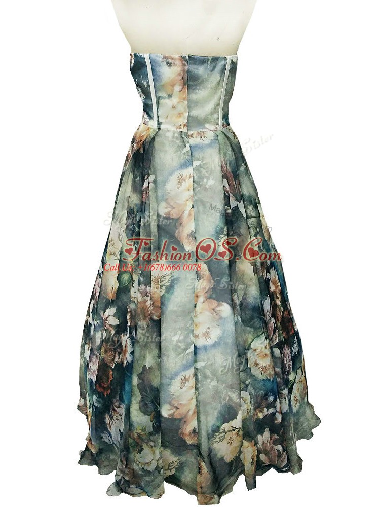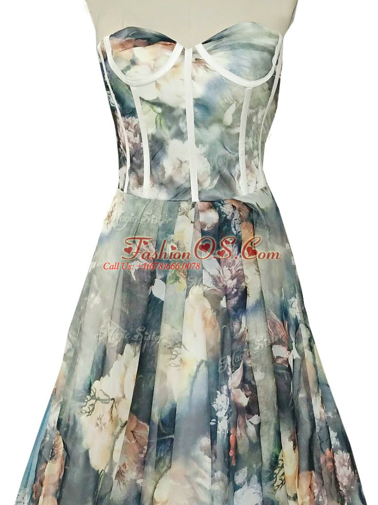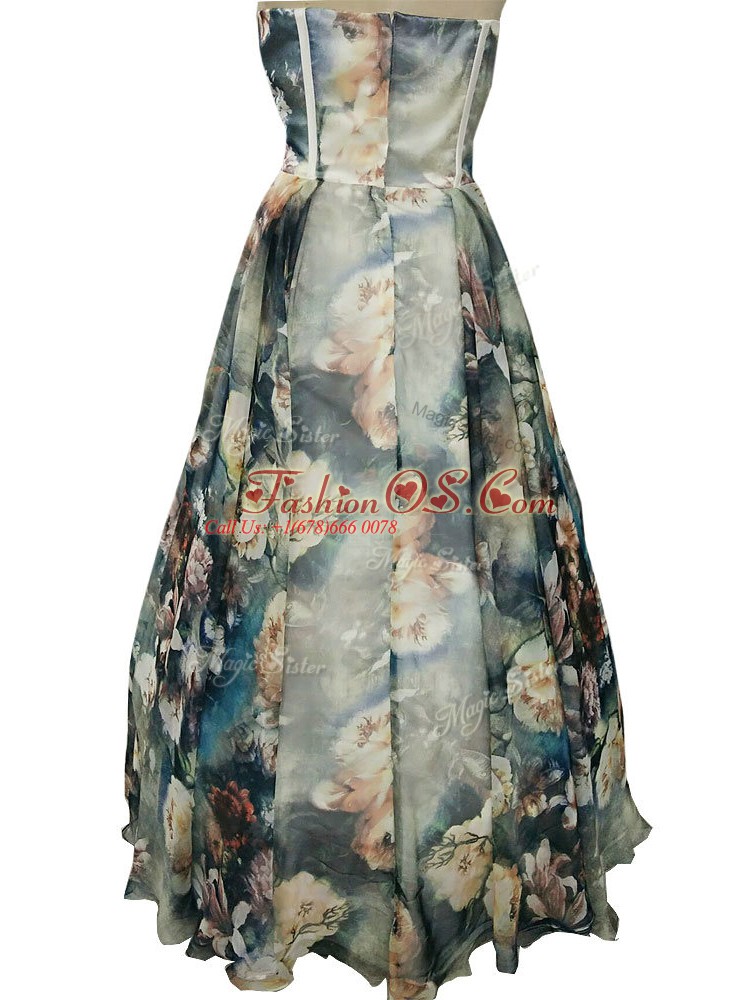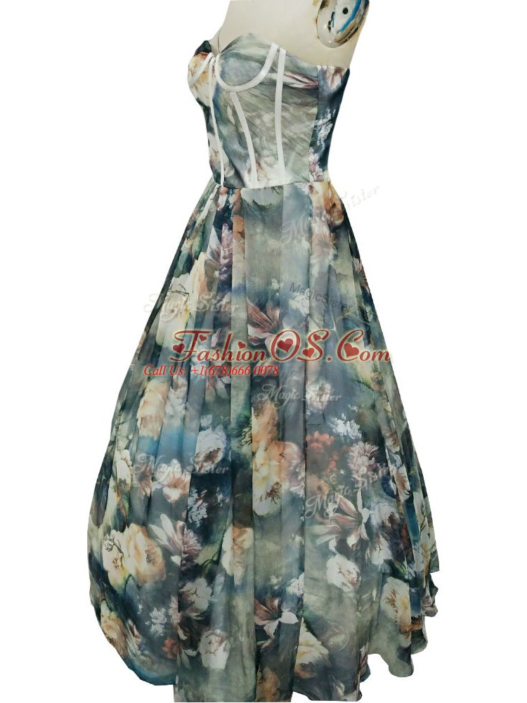 Multi-color A-line Sweetheart Sleeveless Printed Floor Length Zipper Ruching Homecoming Gowns