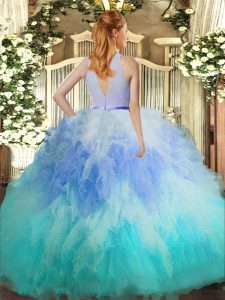 Multi-color Backless Quinceanera Gown Beading and Ruffles Sleeveless Floor Length