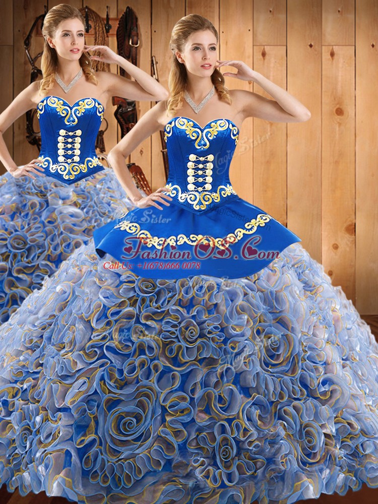Multi-color Ball Gown Prom Dress Military Ball and Sweet 16 and Quinceanera with Embroidery Sweetheart Sleeveless Sweep Train Lace Up