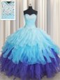 Home >  Quinceanera Dresses >  In Stock Quinceanera Dresses > Multi-color Ball Gowns Beading and Ruffles Quinceanera Dress Lace Up Organza Sleeveless Floor Length