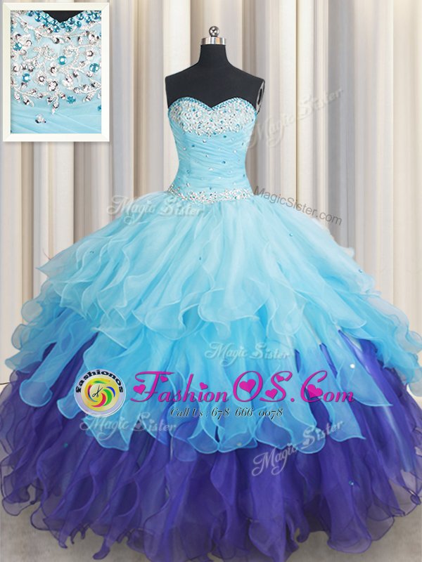 Multi-color Ball Gowns Beading and Ruffles Quinceanera Dress Lace Up Organza Sleeveless Floor Length