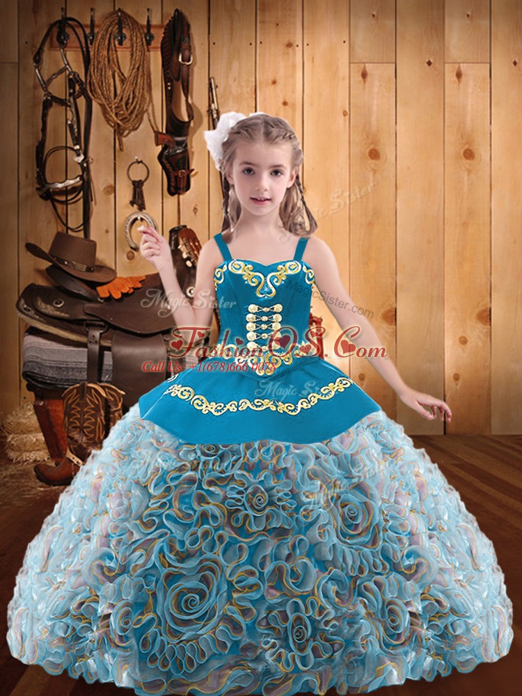 Home >  Special Occasion Dresses >  Beautiful Kids Pageant Dresses > Multi-color Ball Gowns Fabric With Rolling Flowers Straps Sleeveless Embroidery and Ruffles Floor Length Lace Up Evening Gowns