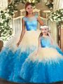 Multi-color Ball Gowns Lace and Ruffles Quinceanera Gown Backless Organza Sleeveless Floor Length
