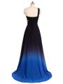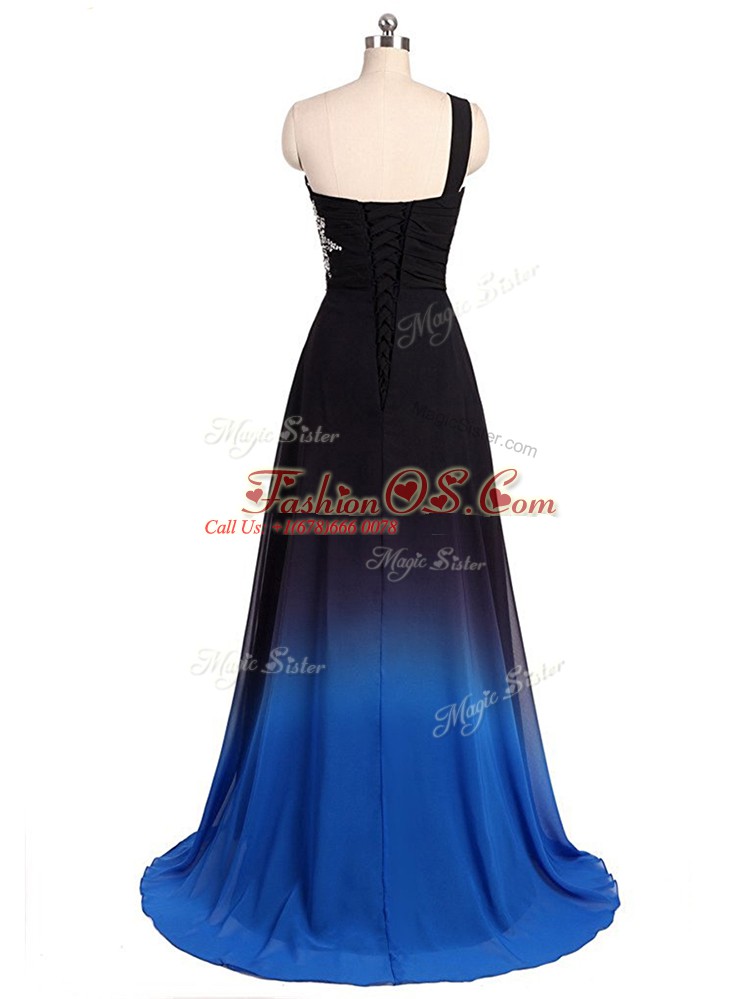Multi-color Chiffon Brush Train Sleeveless Beading and Ruching