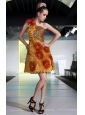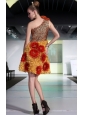 Home >  Prom Dresses >  Discount Prom Dresses > Multi-color Column One Shoulder Mini-length Chiffon Beading and Hand Made Flowers Prom Dress