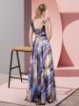 Multi-color Empire V-neck Sleeveless Printed Floor Length Lace Up Pattern Prom Dress