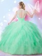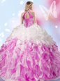 Multi-color Halter Top Lace Up Beading and Ruffles and Pick Ups 15th Birthday Dress Sleeveless