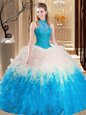 Multi-color High-neck Neckline Lace and Appliques and Ruffles Vestidos de Quinceanera Sleeveless Backless