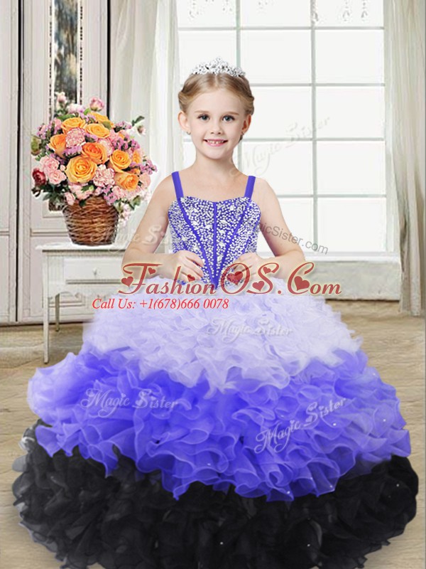 Multi-color Lace Up Little Girls Pageant Dress Wholesale Beading and Ruffles Sleeveless Floor Length