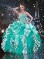 Multi-color Lace Up Quince Ball Gowns Beading and Ruffles Sleeveless Floor Length