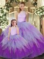 Multi-color Organza Backless High-neck Sleeveless Floor Length Quinceanera Gown Ruffles