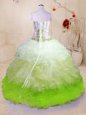 Multi-color Organza Lace Up Quinceanera Dresses Sleeveless With Brush Train Beading and Appliques and Ruffles