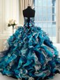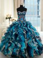 Home >  Quinceanera Dresses >  Custom Made Quinceanera Dresses > Multi-color Organza Lace Up Sweetheart Sleeveless 15 Quinceanera Dress Brush Train Beading and Embroidery and Ruffles