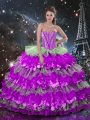 Home >  Quinceanera Dresses >  Fashionable Quinceanera Dresses > Multi-color Organza Lace Up Sweetheart Sleeveless Floor Length Sweet 16 Dresses Beading and Ruffles and Ruffled Layers