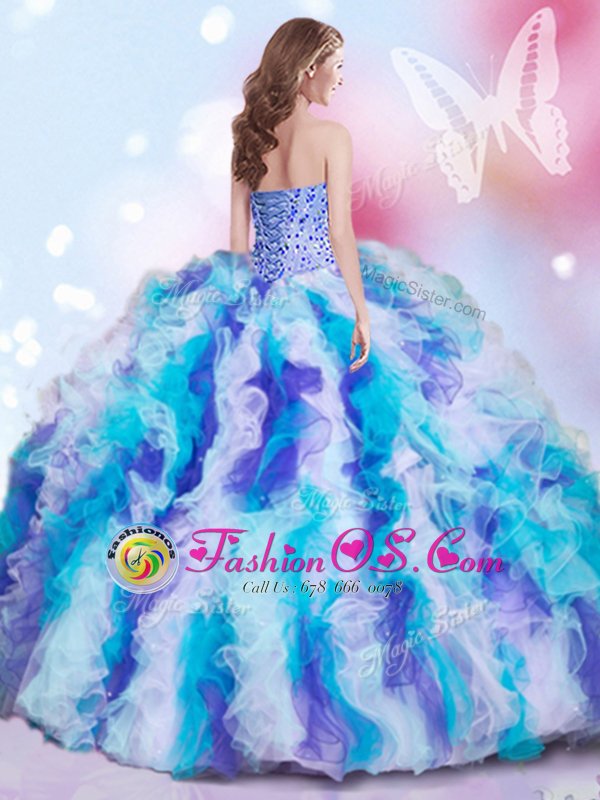 Multi-color Organza Lace Up Sweetheart Sleeveless Sweet 16 Dress Beading and Ruffles