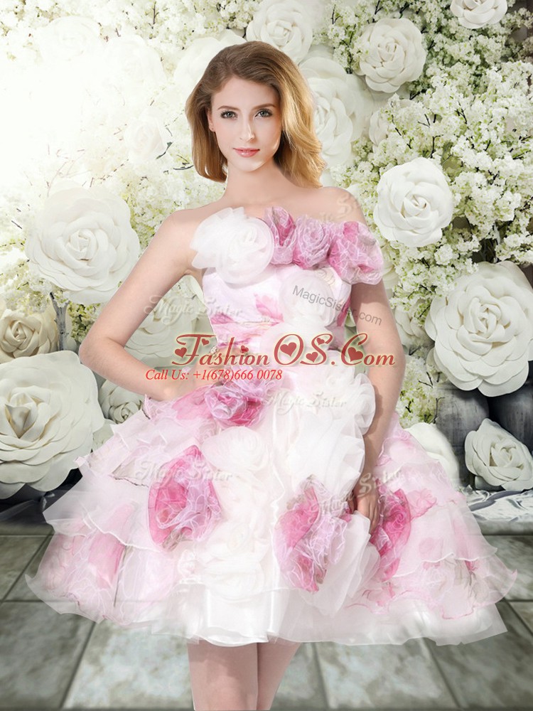 Multi-color Organza Zipper Bridal Gown Sleeveless Mini Length Hand Made Flower