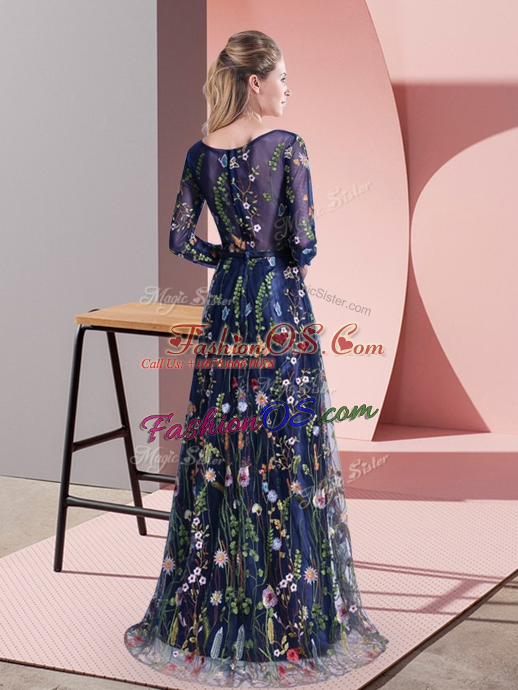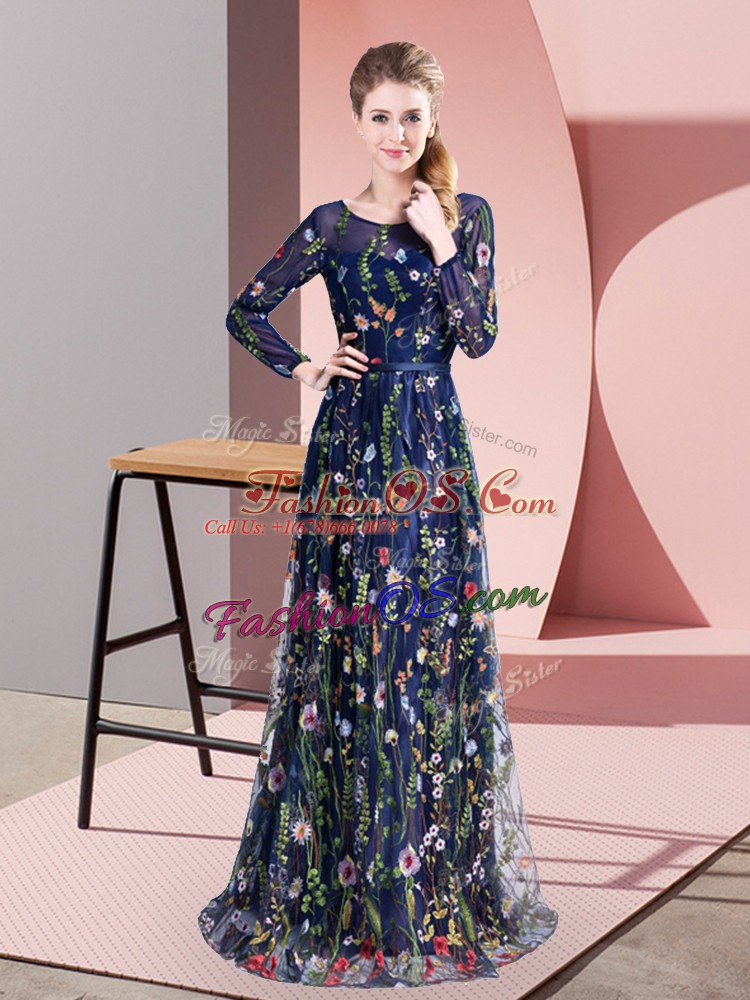 Multi-color Party Dress Wholesale Prom and Party with Pattern Scoop Long Sleeves Sweep Train Zipper