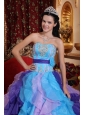 Multi-color Quinceanera Dress Sweetheart Organza Beading and Appliques Ball Gown