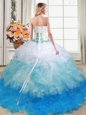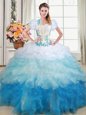 Multi-color Quinceanera Dresses Military Ball and Sweet 16 and Quinceanera and For with Beading and Appliques and Ruffles Sweetheart Sleeveless Brush Train Lace Up