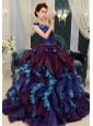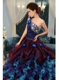 Multi-Color Ruffles One Shoulder Ball Gown With and Made Flowers Gorgeous 2013 Quinceanera Dress