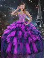 Multi-color Sleeveless Beading and Ruffles and Ruffled Layers Floor Length 15th Birthday Dress