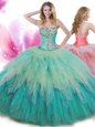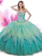 Multi-color Sleeveless Beading and Ruffles Floor Length Quinceanera Dress