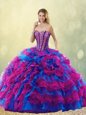 Multi-color Sleeveless Beading and Ruffles Floor Length Sweet 16 Dresses