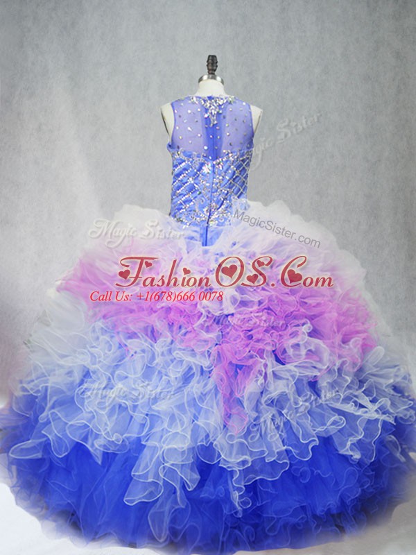 Multi-color Sleeveless Beading and Ruffles Quinceanera Gowns