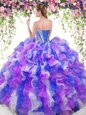 Multi-color Sleeveless Floor Length Beading and Ruffles Lace Up Quinceanera Dress
