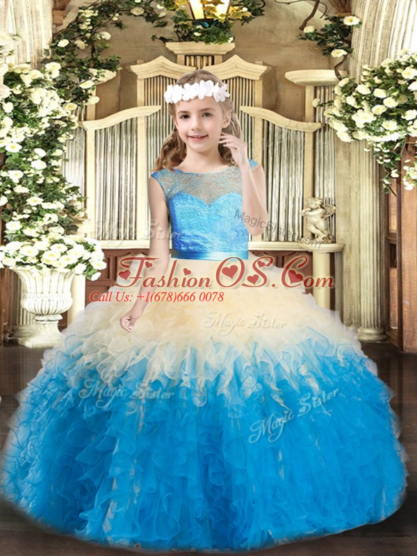 Multi-color Sleeveless Floor Length Lace and Ruffles Backless Pageant Gowns For Girls