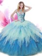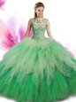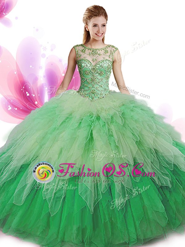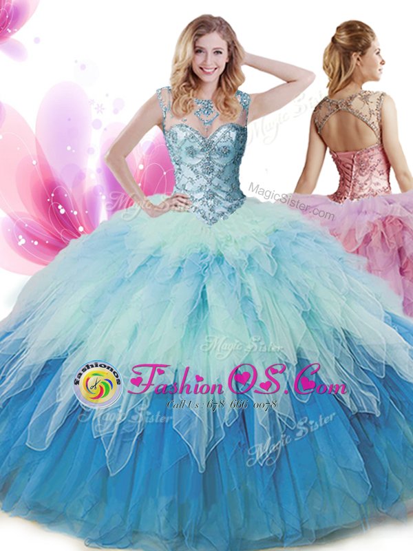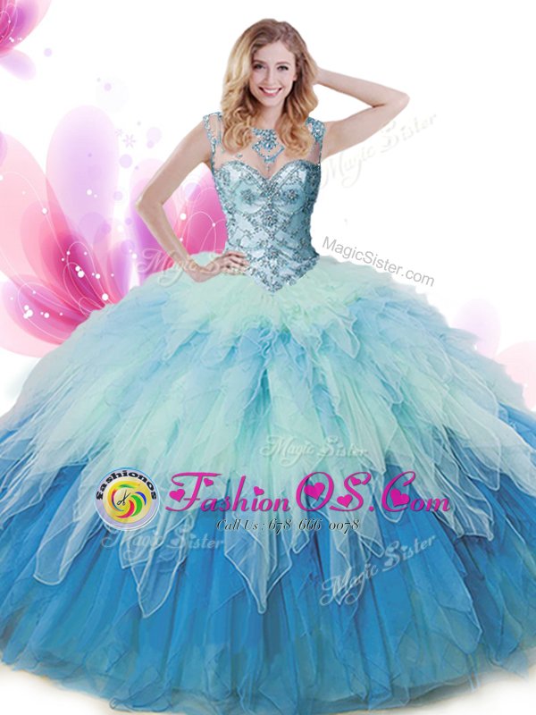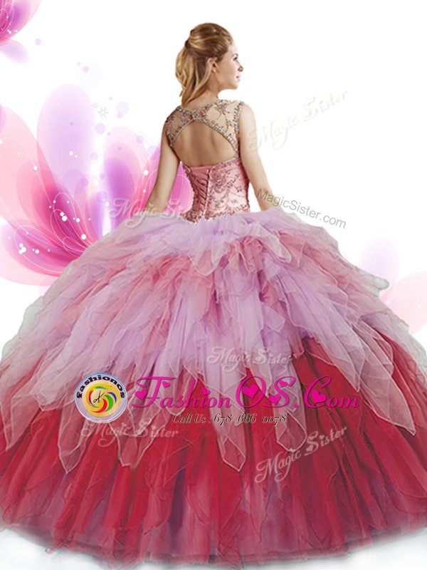 Multi-color Sweet 16 Dress Military Ball and Sweet 16 and Quinceanera and For with Beading and Ruffles Scoop Sleeveless Zipper