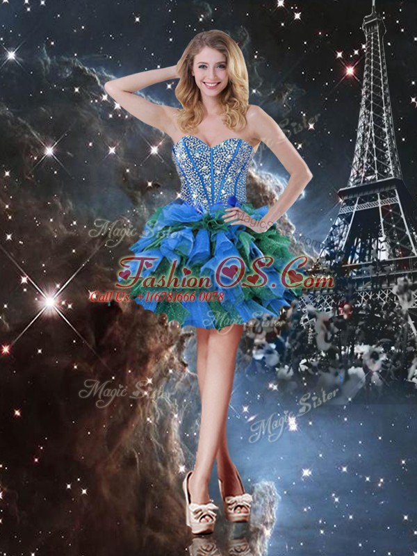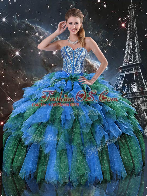 Multi-color Sweetheart Lace Up Beading and Ruffles and Ruffled Layers Sweet 16 Dresses Sleeveless