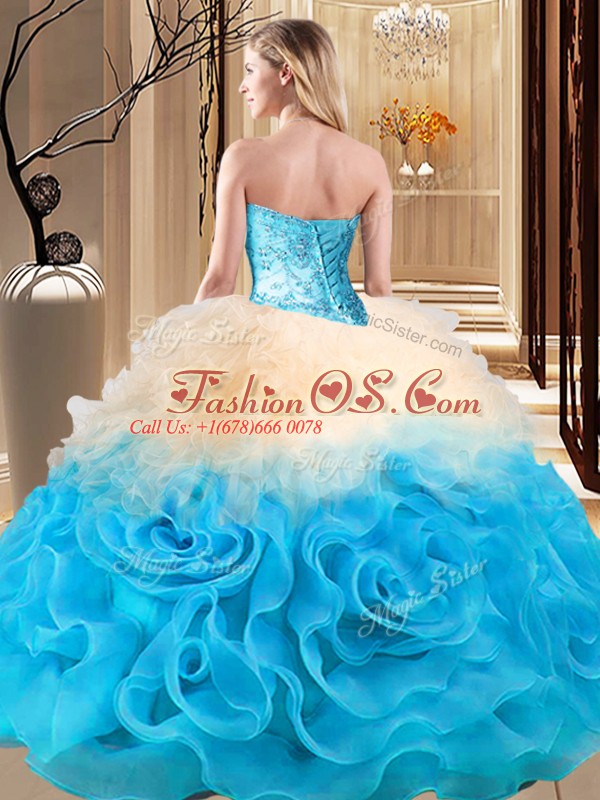 Multi-color Sweetheart Neckline Beading and Ruffles Quinceanera Gowns Sleeveless Lace Up