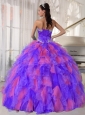 Multi-color Sweetheart Organza Appliques Decorate Puffy Quinceanera Dresses