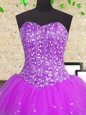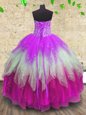 Multi-color Tulle Lace Up Quince Ball Gowns Sleeveless Floor Length Beading and Ruffles and Ruffled Layers