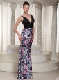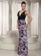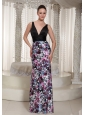 Multi-color V-neck Printing Prom Dress With Floor-length