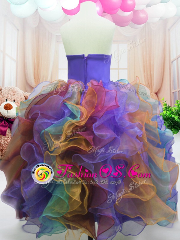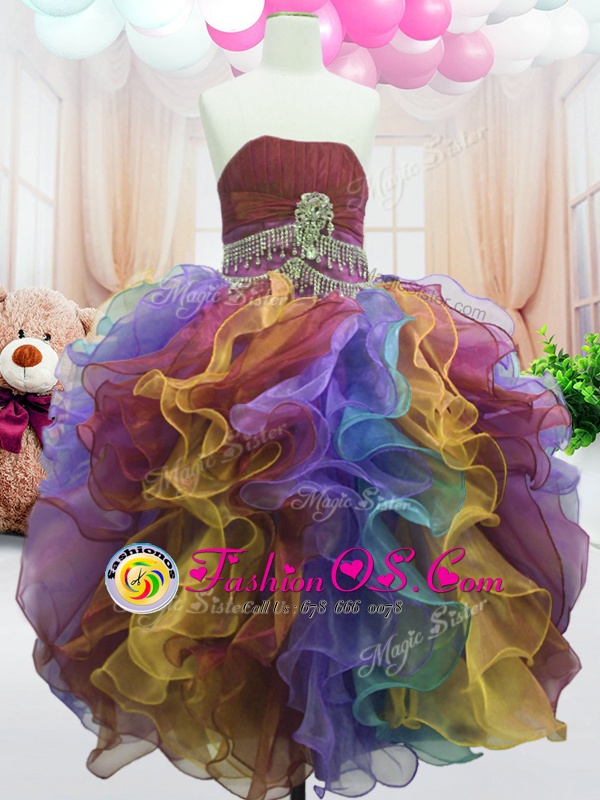 Home >  Special Occasion Dresses >  Mini Quinceanera Dresses > Multi-color Zipper Strapless Beading and Ruffles Kids Pageant Dress Organza Sleeveless