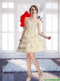 Natural Champagne Detachable Prom Dress with Beading and Ruffled Layers